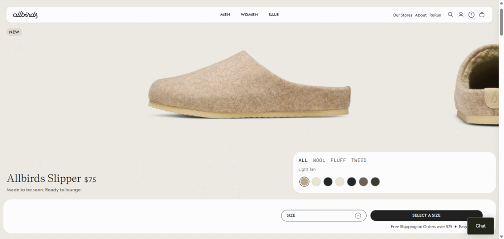 This eco-conscious ethos is reflected in their website’s minimalist UX design, which uses clean lines, soft colors, and straightforward navigation to make the shopping process feel calm and intentional.