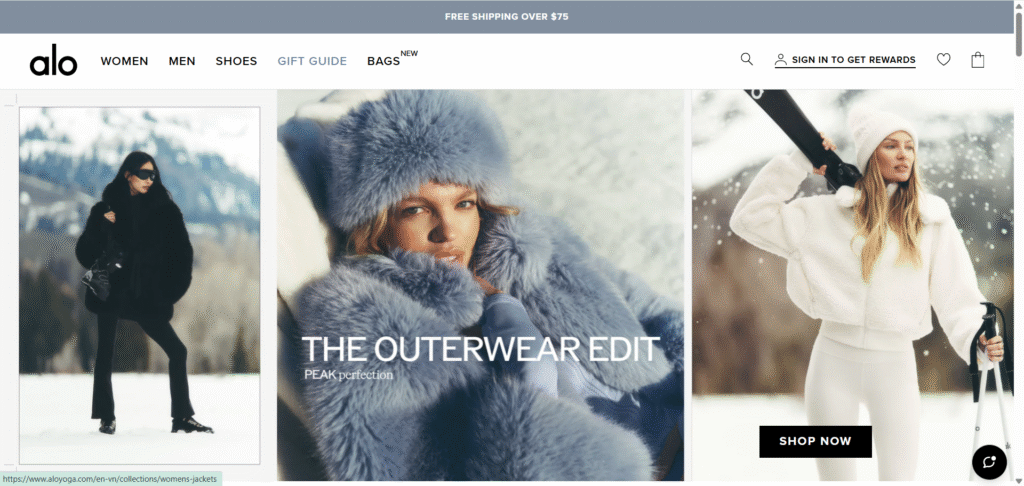Alo Yoga sells more than just yoga wear; they sell a complete wellness lifestyle. Their brand story is one of luxury, mindfulness, and studio-to-street fashion, which is perfectly reflected in their site’s sophisticated and editorial-style design.