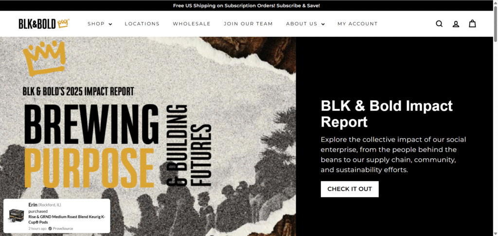 | BLK & Bold | Food & Beverage | 5% Profit Pledge & NBA Partnership |