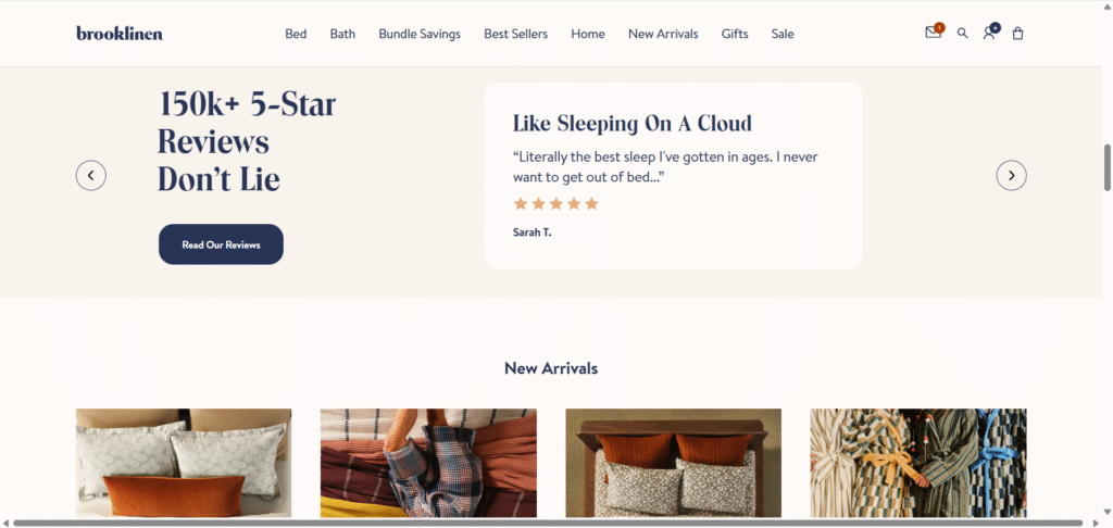 Brooklinen’s tagline, “The Internet’s Favorite Sheets,” is a bold claim they back up with overwhelming social proof.