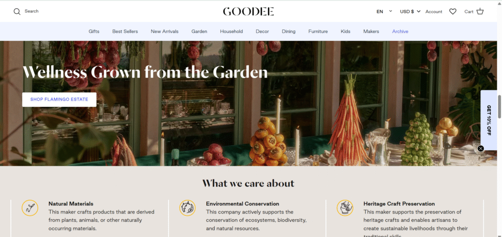 This purpose-driven approach excels at building trust. The site is filled with content about their planting projects and sustainability efforts, giving customers a powerful reason to choose them over a competitor.