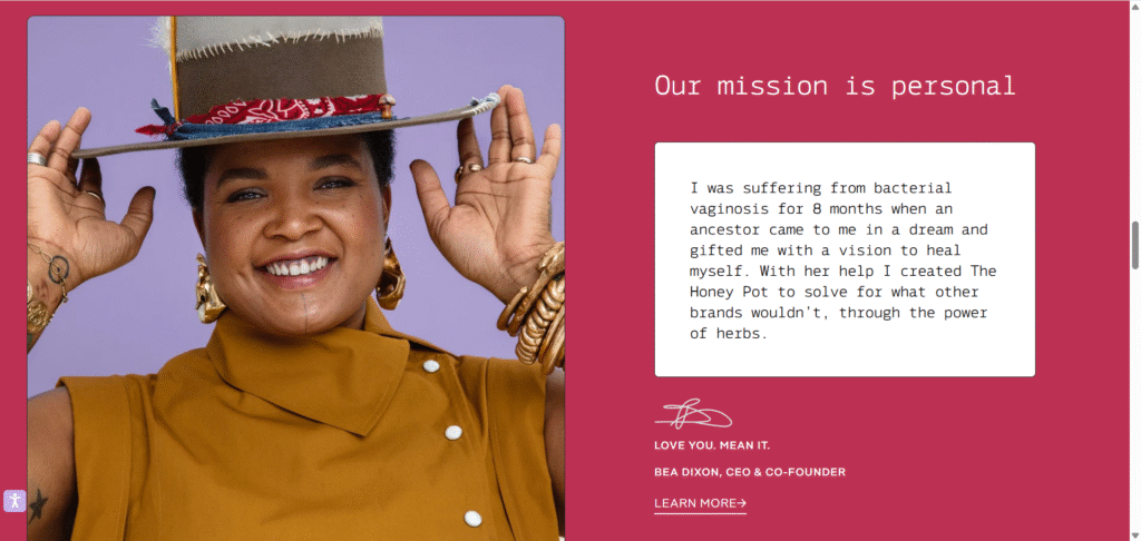 The website copy and “About Us” page reinforce their story, creating a strong sense of community and trust with their target audience. This focus on authenticity makes their brand deeply relatable and memorable.