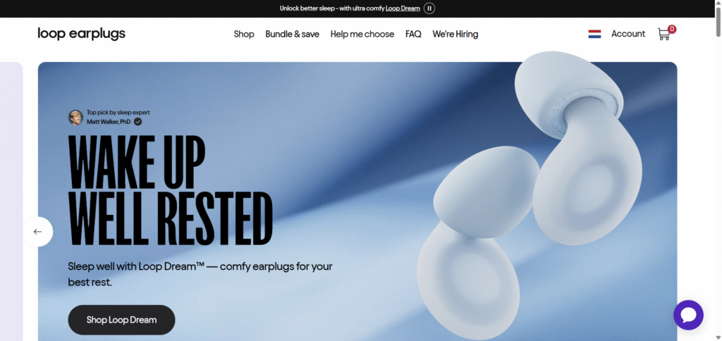 Loop took a purely functional product—earplugs—and made it a stylish accessory. Their brand niche is providing high-fidelity sound reduction for specific situations like concerts, focus, or sleep, and their website is expertly designed to guide users to the right solution.