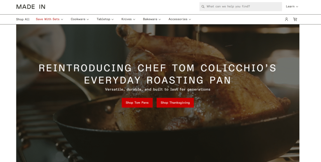 Made In targets home chefs who want professional-grade cookware, and they build authority through a content-rich shopping experience.