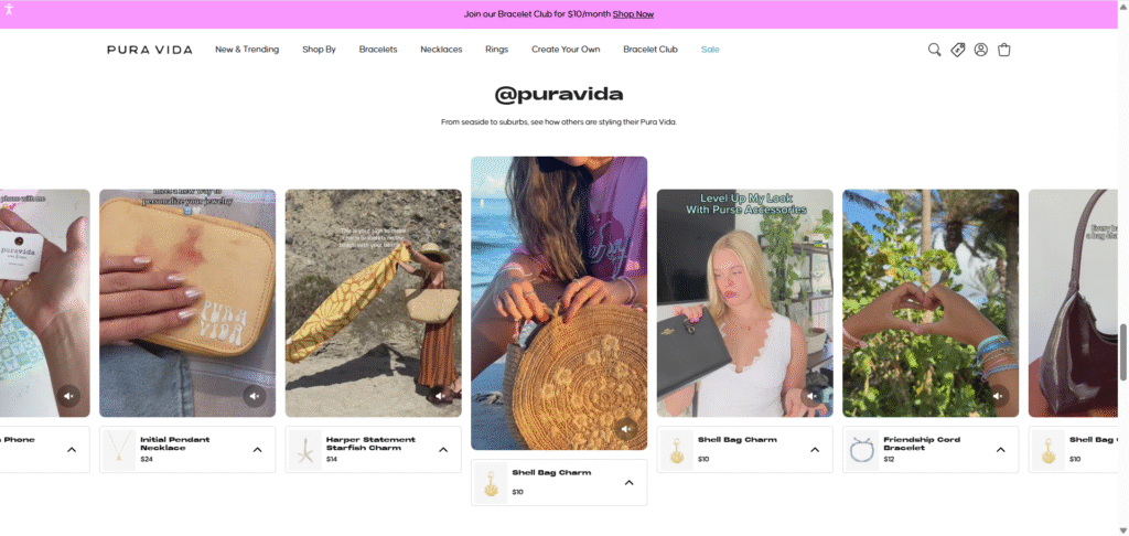 Their greatest strength is their mastery of social proof. With millions of Instagram followers, their site is covered in user-generated content from their community, showcasing real customers living the Pura Vida lifestyle.