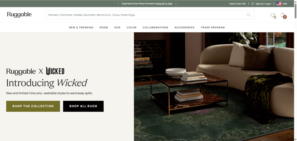 Ruggable built an empire on a single, brilliant idea: machine-washable rugs. Their entire brand story is about solving a common frustration, and their website’s UX design is expertly crafted to communicate this solution.