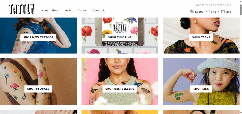 Their visual merchandising is exceptional, showcasing the tattoos on diverse models with crisp, editorial-quality photography. This transforms the product from a disposable novelty into a legitimate design object, allowing them to own the high-end, design-conscious niche.