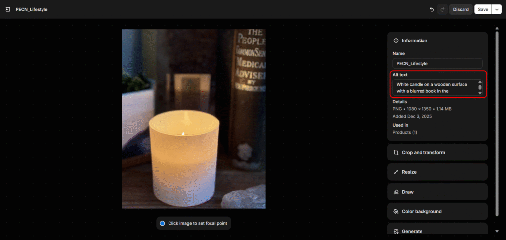 Product images are a critical part of the shopping experience, and they’re also an SEO opportunity. Google can’t “see” images, so you need to provide context using descriptive alt text.