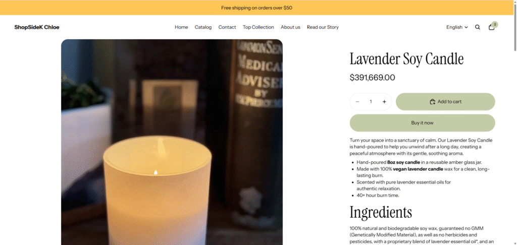For this phase, we’ll dissect the exact optimizations we made to The Cozy Corner’s best-selling “Lavender Soy Candle” page, turning it into a magnet for both traffic and sales.