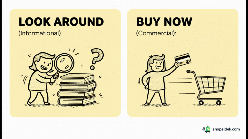 Effective keyword research is about understanding the exact words and phrases your ideal customers type into Google when they’re ready to buy. For an e-commerce store, this means focusing less on general interest and more on commercial buyer intent. The goal is to attract visitors who are actively looking to make a purchase.