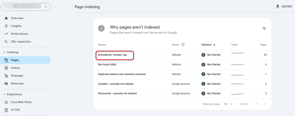 “noindex” Tag: This is a piece of code that explicitly tells Google not to add a page to its index. While sometimes useful, an accidental noindex tag can make your homepage or key product pages invisible. You can spot these issues in Google Search Console under the Pages > Page indexing report, which will flag any pages “Excluded by ‘noindex’ tag.”