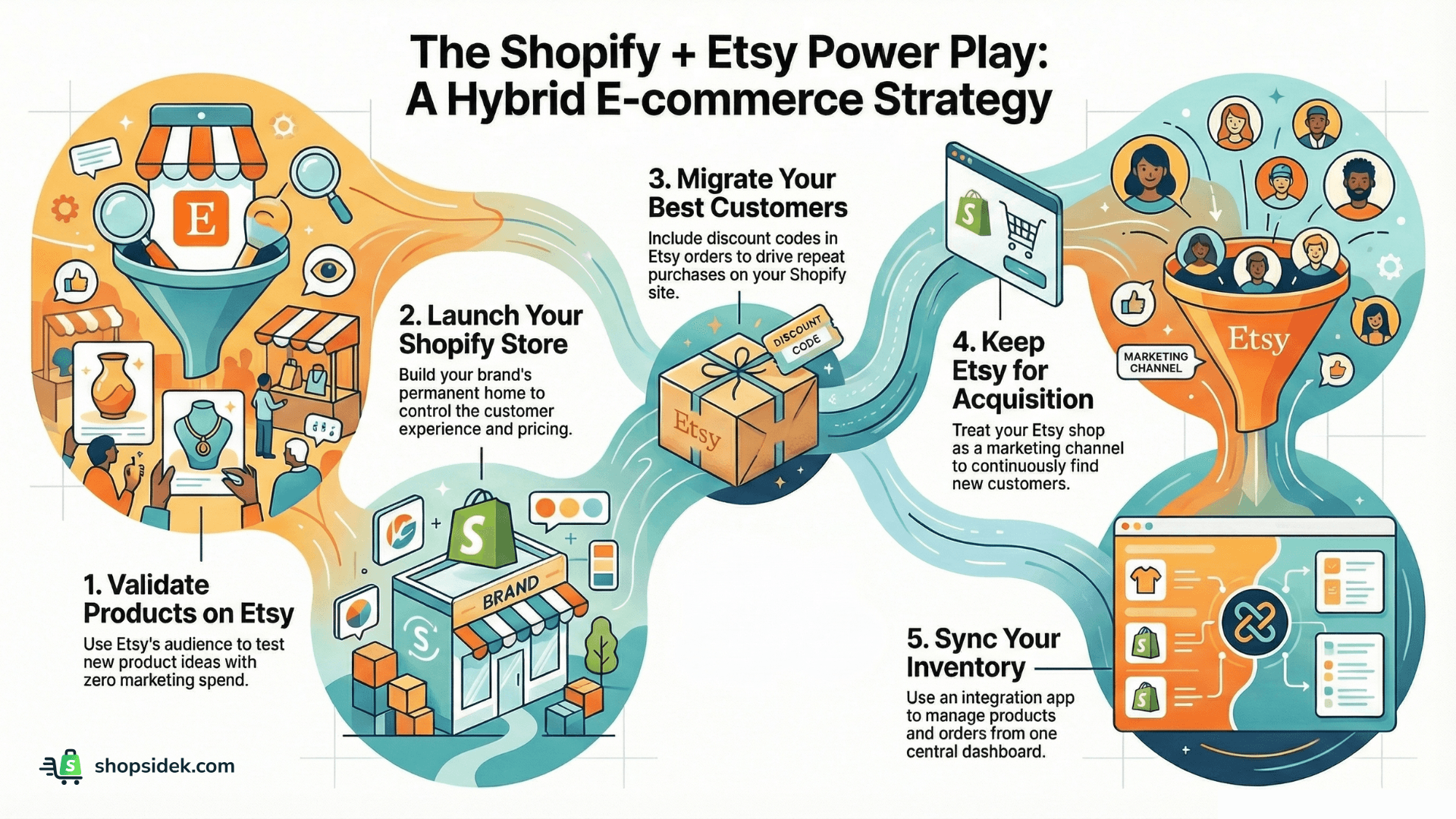 Choosing between Shopify and Etsy doesn’t have to be an all-or-nothing decision. Some of the most successful online brands use a powerful hybrid strategy that leverages the unique strengths of both platforms, creating a seamless engine for acquisition and retention. This approach allows you to find new customers on Etsy while building your brand and profits on Shopify.