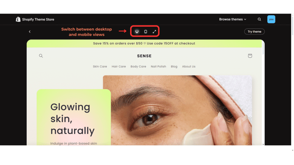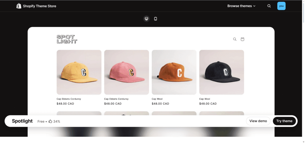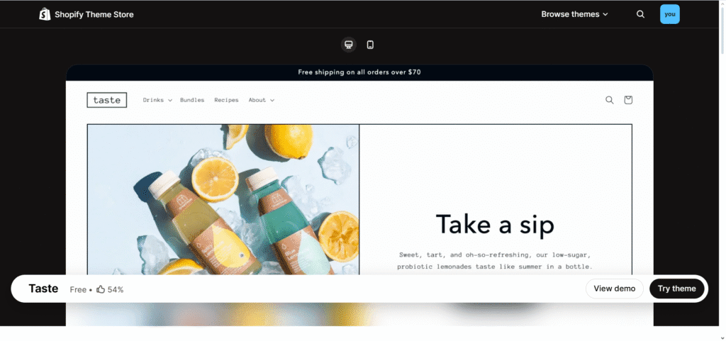Don’t overlook this: never choose a theme without taking it for a spin. You can preview each theme directly on Shopify in both desktop and mobile views. Take at least ten minutes to explore the official demo store on desktop and—most importantly—on your smartphone.