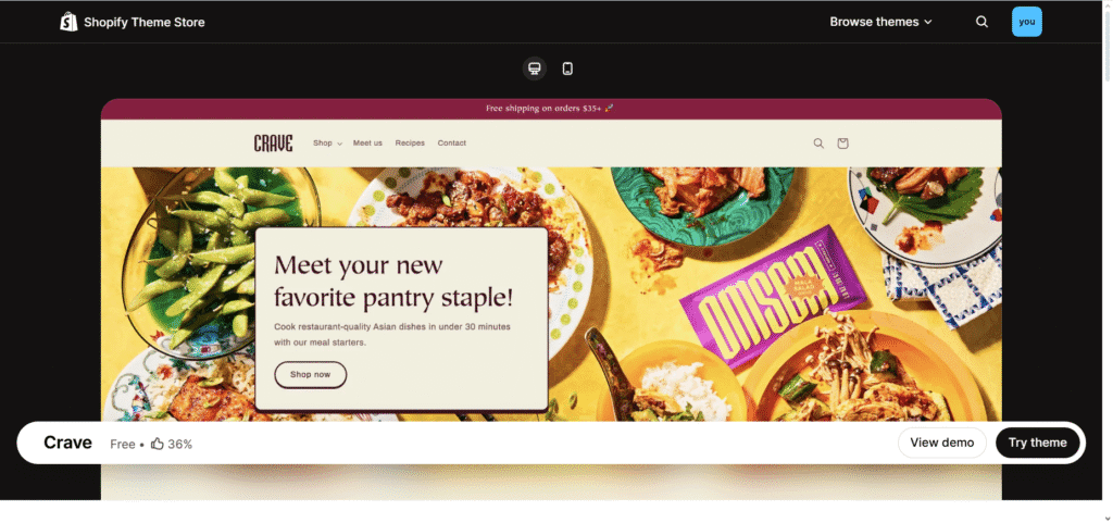 Based on our performance testing, Crave has the highest mobile performance score (85/100), making it the fastest for on-the-go shoppers. For desktop, Dawn and Sense deliver top-tier speed (99/100). However, all official Shopify themes are highly optimized, and any theme on this list will provide a fast, reliable foundation for your store.