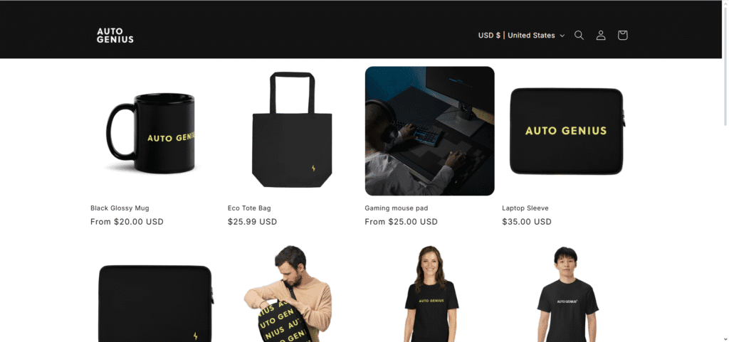 Live Store Examples: AutoGenius utilizes Spotlight’s streamlined, “product-first” design to create a direct and efficient shopping path. Engineered for maximum performance and minimal clutter, the theme provides a lightning-fast foundation that allows the brand’s merchandise-focused catalog to load instantly, proving that a minimalist, high-speed interface is the ultimate tool for conversion-focused merchants.