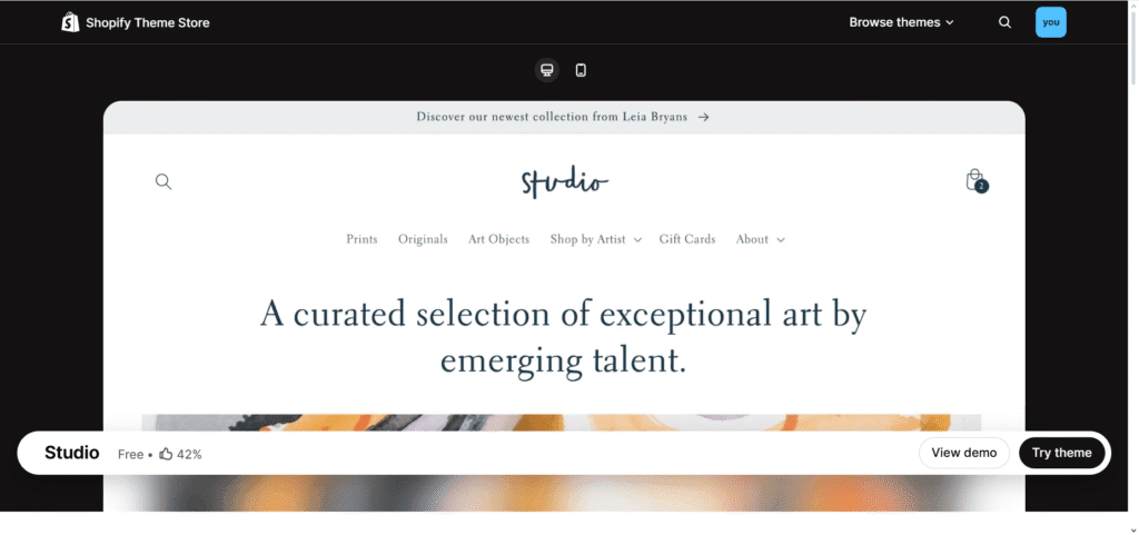 | The power Tier: Power-user themes | Studio | Collection-Based Navigation, Creator Profiles, Colorful Accents | Art Galleries & Limited Edition Drops |