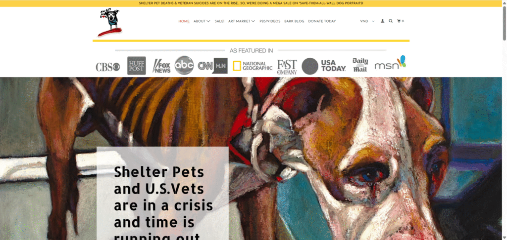 A moving example is An Act of Dog, a non-profit that funds animal rescue missions. They use their Shopify store to clearly explain their mission and collect donations that directly fund their life-saving work.