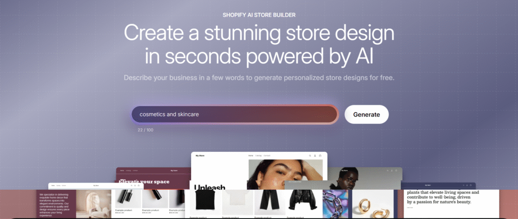 Shopify has heavily invested in making high-end design accessible to everyone. Its most innovative feature is the AI-powered theme generator. Part of Shopify Magic, this tool allows you to describe the look and feel you want, and the AI will generate a unique, custom theme draft in seconds. This provides an incredible starting point that is already tailored to your brand.