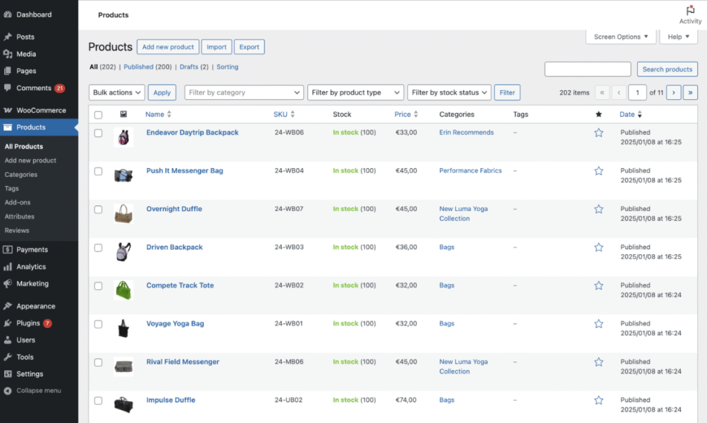 While core tasks like adding products and managing orders are straightforward, the experience is less commerce-focused. The interface blends your store management with WordPress’s blogging and content features.