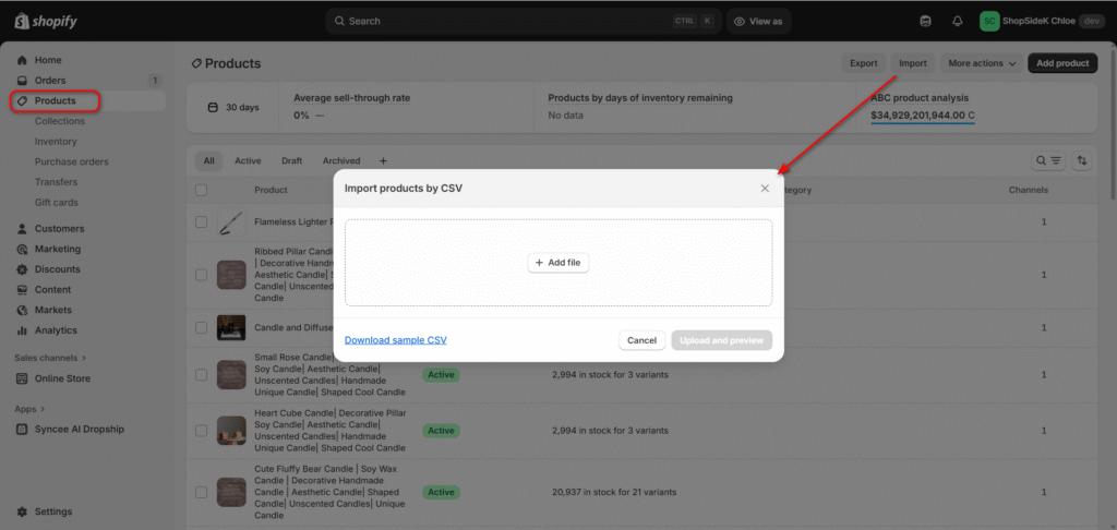 In your Shopify admin, go to Products and click the Import button. Upload your modified CSV file. Shopify will show you a preview of how it interprets the data. Review this carefully to make sure products, prices, and variants look correct before starting the import.